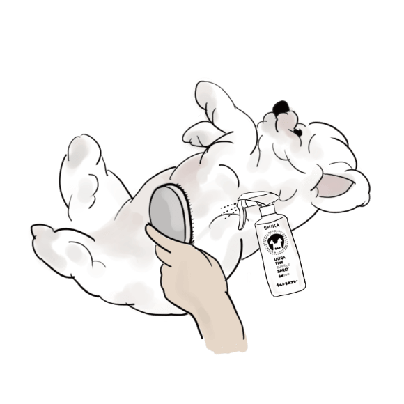 スプレー後、タオル等で拭き取るかブラッシングを行ってください。